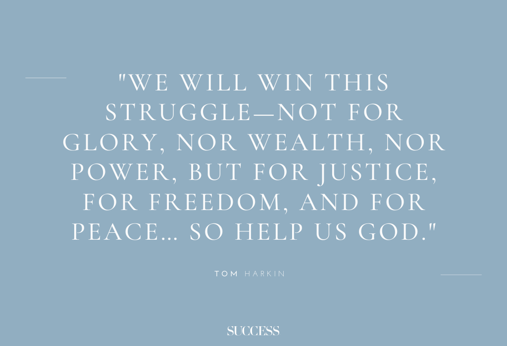 10. “We will win this struggle—not for glory, nor wealth, nor power, but for justice, for freedom, and for peace… so help us God.” — Tom Harkin