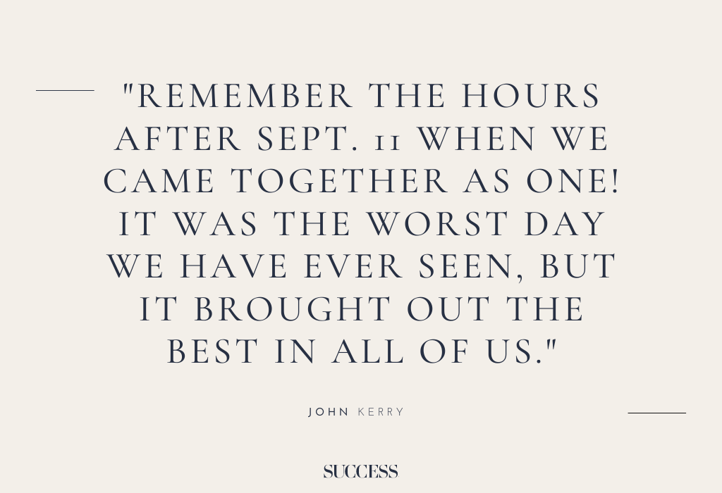 11. “Remember the hours after Sept. 11 when we came together as one! It was the worst day we have ever seen, but it brought out the best in all of us.” — John Kerry