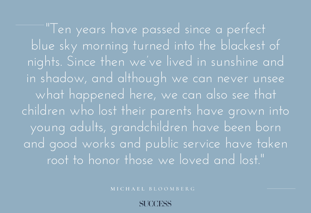 14. “Ten years have passed since a perfect blue sky morning turned into the blackest of nights. Since then we’ve lived in sunshine and in shadow, and although we can never unsee what happened here, we can also see that children who lost their parents have grown into young adults, grandchildren have been born and good works and public service have taken root to honor those we loved and lost.” — Michael Bloomberg