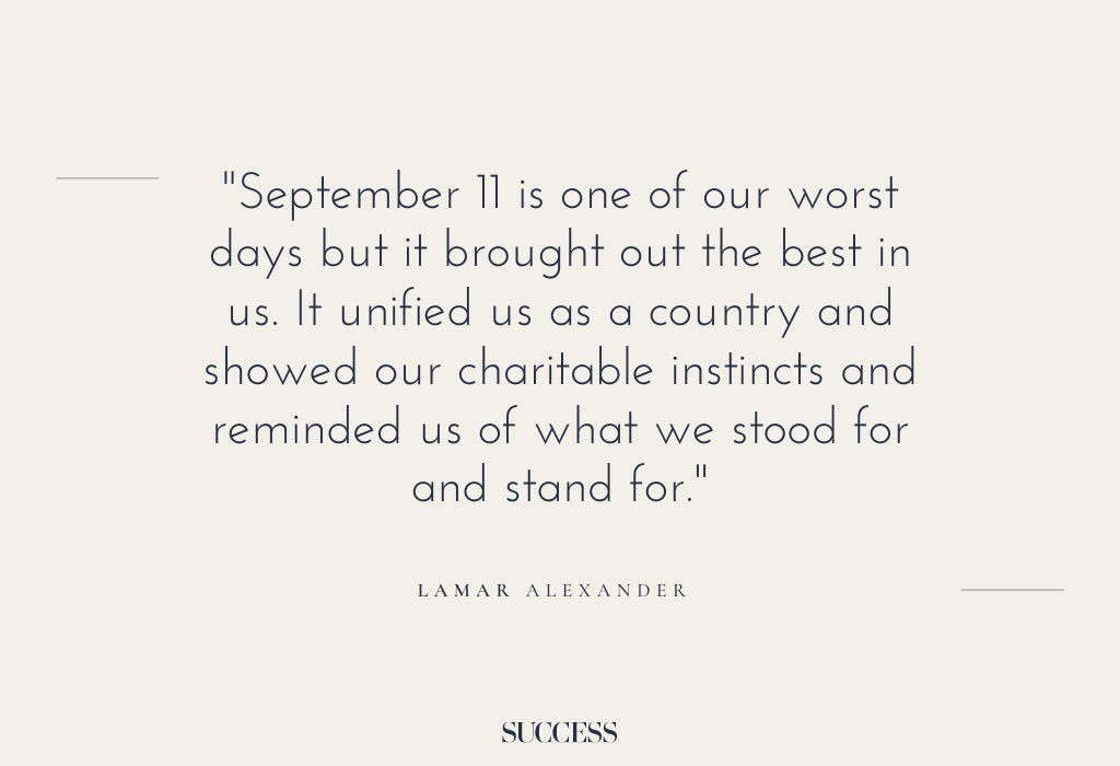 15. “September 11 is one of our worst days but it brought out the best in us. It unified us as a country and showed our charitable instincts and reminded us of what we stood for and stand for.” — Lamar Alexander