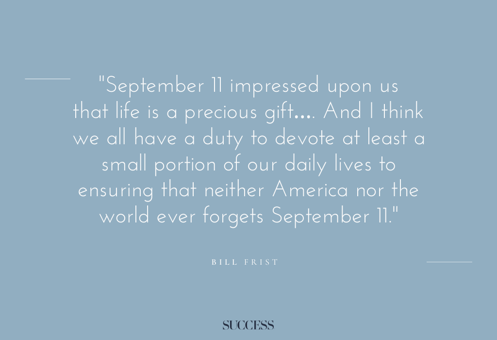 16. “September 11 impressed upon us that life is a precious gift…. And I think we all have a duty to devote at least a small portion of our daily lives to ensuring that neither America nor the world ever forgets September 11.” — Bill Frist