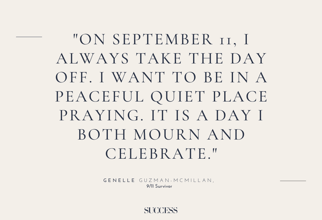 17. “On September 11, I always take the day off. I want to be in a peaceful quiet place praying. It is a day I both mourn and celebrate.” — Genelle Guzman-McMillan, 9/11 Survivor