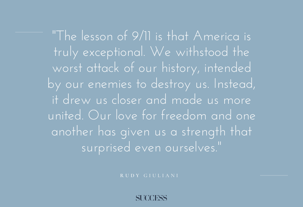 18. “The lesson of 9/11 is that America is truly exceptional. We withstood the worst attack of our history, intended by our enemies to destroy us. Instead, it drew us closer and made us more united. Our love for freedom and one another has given us a strength that surprised even ourselves.” — Rudy Giuliani