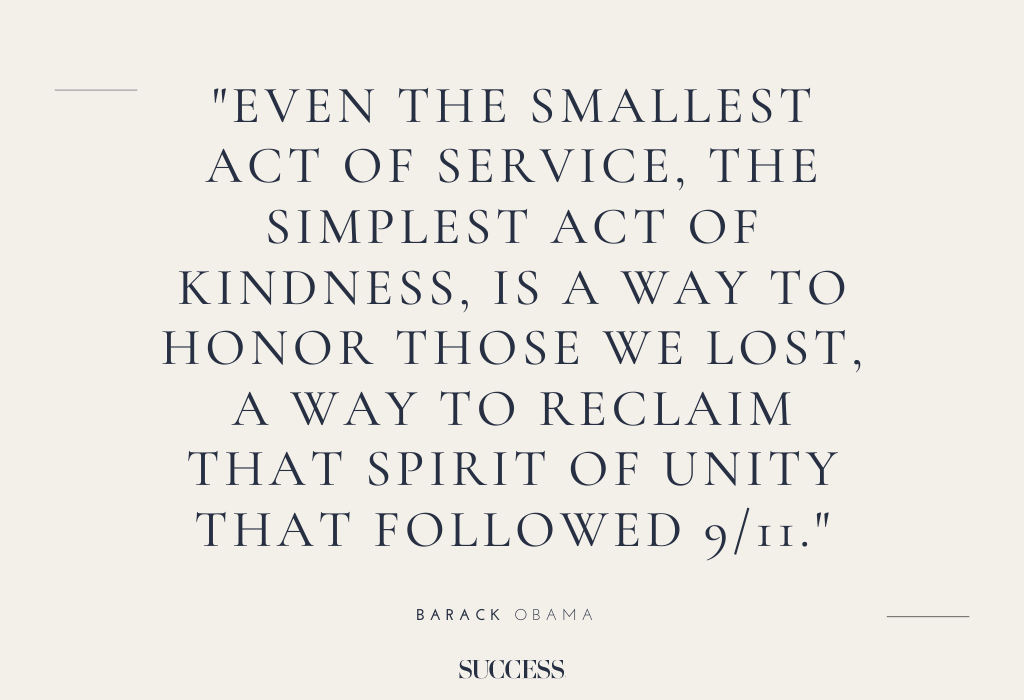 3. “Even the smallest act of service, the simplest act of kindness, is a way to honor those we lost, a way to reclaim that spirit of unity that followed 9/11.” — Barack Obama