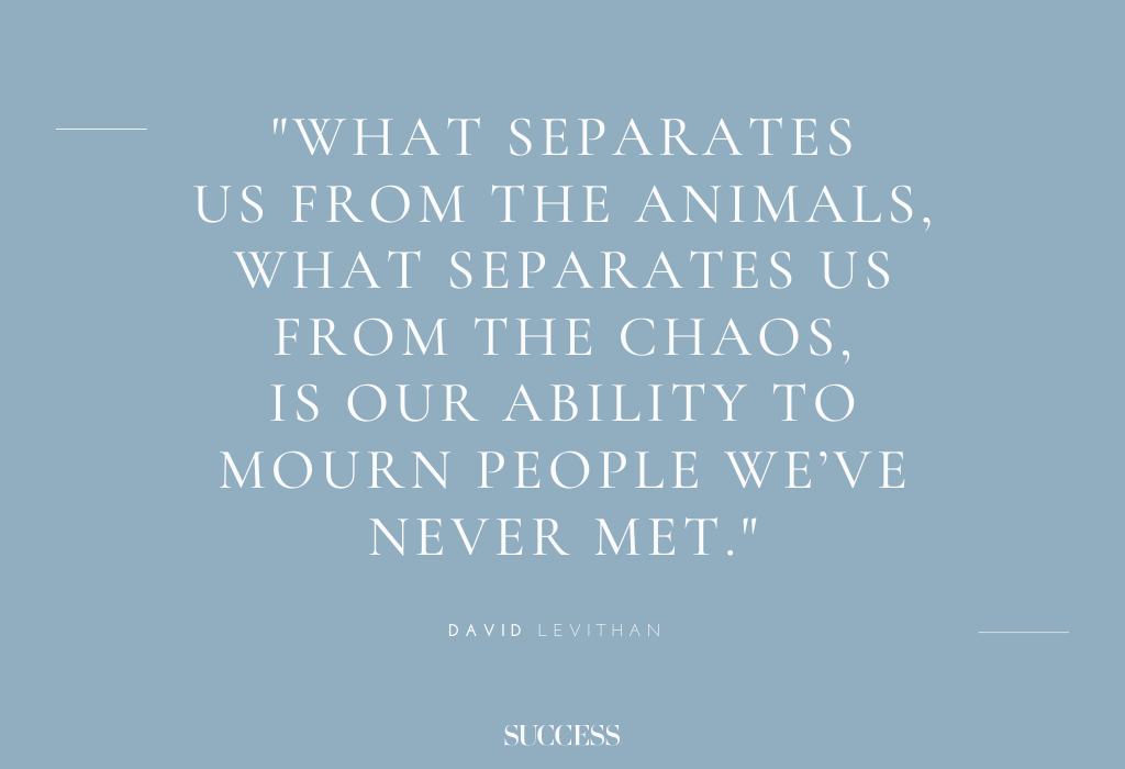 8. “What separates us from the animals, what separates us from the chaos, is our ability to mourn people we’ve never met.” — David Levithan
