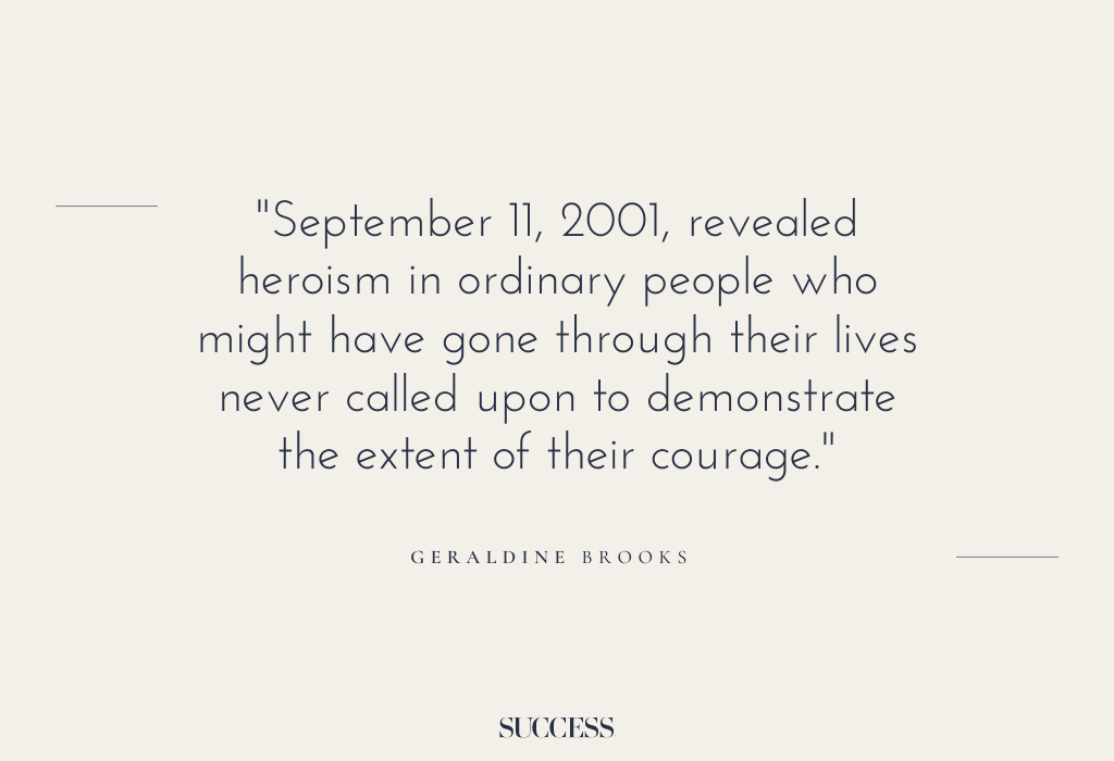 9. “September 11, 2001, revealed heroism in ordinary people who might have gone through their lives never called upon to demonstrate the extent of their courage.” — Geraldine Brooks