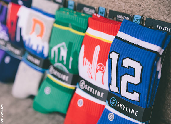 For almost a year, the trio researched and sampled products and fabrics from around the globe before placing their original order of 40,000 pairs in 2012. The idea has always been for the socks to make a statement about the city featured on each pair. The original launch included Seattle, San Francisco and New York City. The company has since added Los Angeles, Chicago, Dallas and others to the mix.